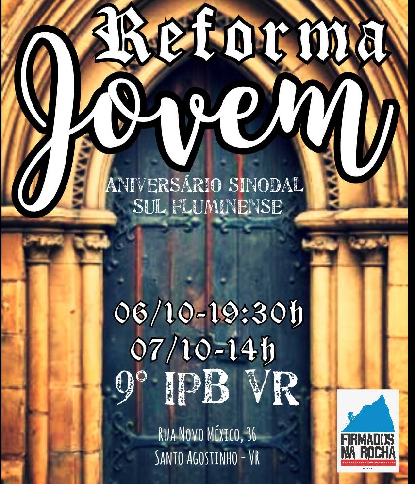 Em parceria entre CNM e o Sínodo Sul Fluminense - RJ, acontecerá nesta sexta 06/10 às 19:30 e sábado 07/10 a partir das 14:30 o Reforma Jovem Sul Fluminense.